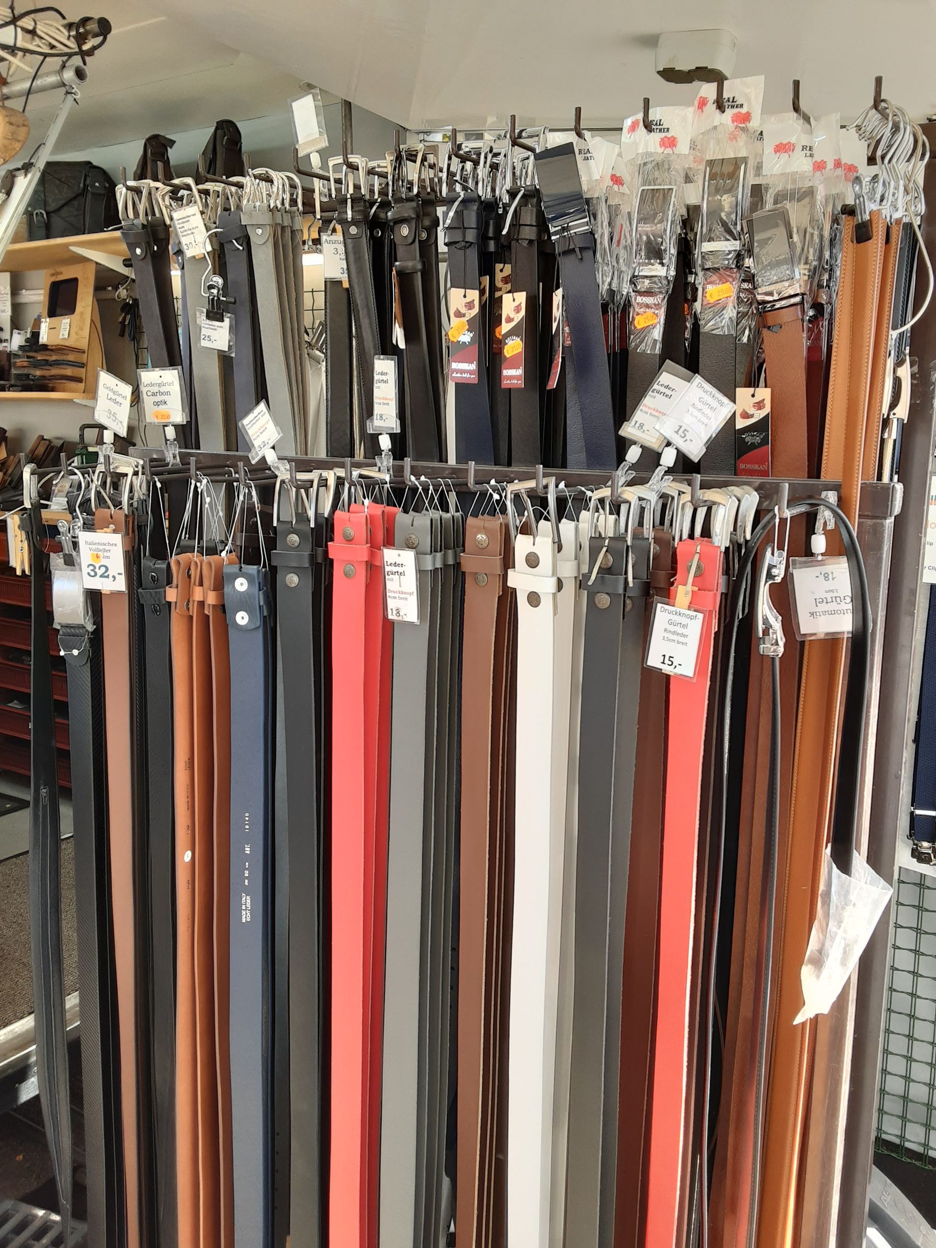 Lederbörsen, Taschen, Gürtel, Gürtelschliessen und und und. In unserem Online-Shop